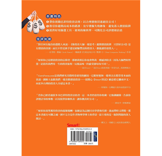 「如果你已經看過很多本巴菲特投資法的書,這一本書仍值得你收藏,它強調細節,告訴你評價計算的參數及提供你檢核表,讓你挑出好公司。」
