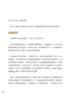 假如你是初入價值投資的讀者,那麼本書的作者將大師們的知識內化之後,把那些重要的事一一細數給你,可以為你築起紮實的基座;同樣的如果你已是價值投資的信仰者,那麼我相信你也會與我一般感到欣喜,因為大師們的智慧,是值得我們用一生的投資旅程,反覆品味,但感受卻每每不同!