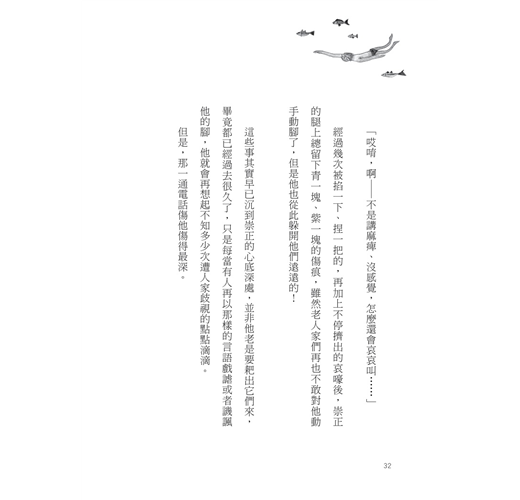 老師把他的不服輸與不甘心人生只有如此的精神,編織出了一道巨大又堅固的網,先是承接了生命中所有的一切好壞,再來用力的篩出了一篇又一篇精采的故事。誠如書中所寫,崇正的過去其實就是那麼幾句話而已,聽來幾分鐘,經歷卻要大半輩子,但他選擇了掌握自己的生命,不願意再讓他人安排他的未來,他更深信,自己能夠翻轉他的命運。