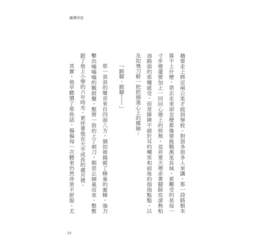 這些事其實早已沉到崇正的心底深處,並非他老是要耙出它們來,畢竟都已經過去很久了,只是每當有人再以那樣的言語戲謔或者譏諷他的腳,他就會再想起不知多少次遭人家歧視的點點滴滴。
