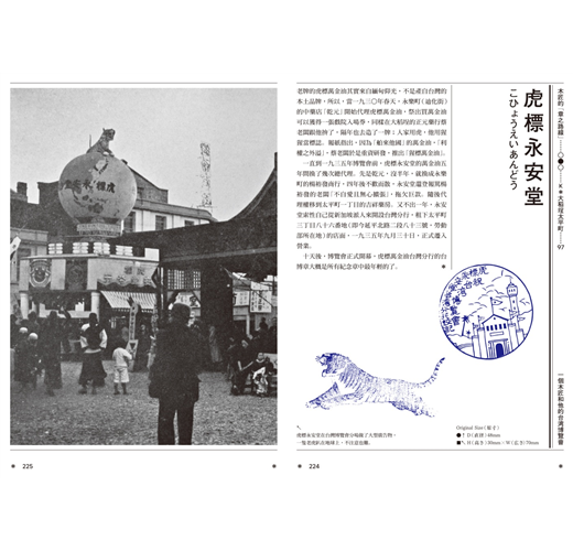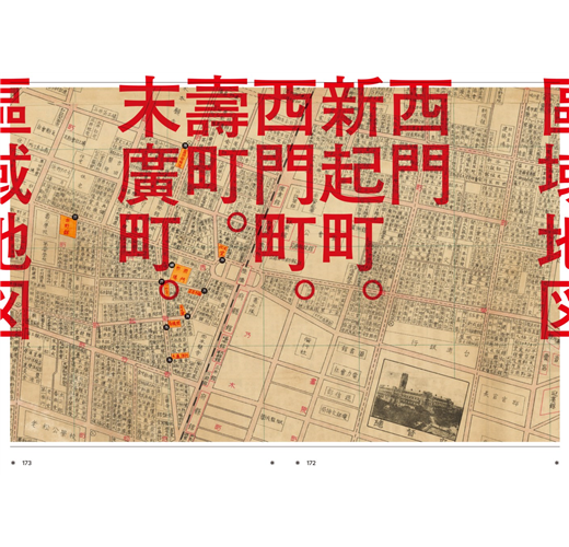 書中共附有九張區域圖,作者查找密密麻麻的地圖及土地圖冊,盡可能標示出眾多紀念章店家的所在位置,並由此發現,除了博覽會會場周圍之外,更向外延伸、橫跨整個台北,原來當時是島內所有人共同參與這場盛事!