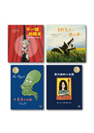 本套書共四本:《不一樣的朋友》、《勇敢兔子,膽小狼!》、《大章魚艾米爾》、《賣火柴的小女孩》。