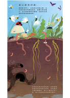 ◎最上層的腐植質有動植物的遺體,能為蘑菇和蚯蚓提供食物。
