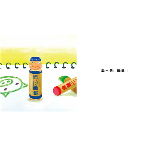 在故事一開始,小男孩認為當玩具很好玩,於是決定當一天玩具試試看!他先是當了蠟筆,結果臉被壓在紙上...