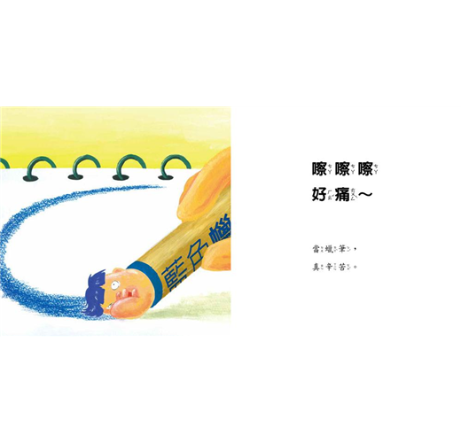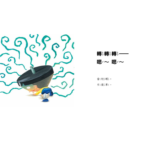 書中誇張畫風及鮮豔配色笑果十足,能吸引孩子的興趣;而變身成玩具的過程,則幫助孩子同理玩具的心情,讓孩子在玩玩具的同時,也能有意識的珍惜玩具,養成愛惜東西的好習慣。