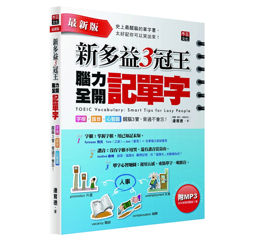 考新多益閱讀、聽力、連口說皆滿分的 3 冠王老派,私房祕訣就是「全腦學習」,本書的記單字 3 寶,從考前抱佛腳到肌肉記憶(深植潛意識)皆適用,他親身上新多益考場證明有效,你也可以這樣搞定新多益!
