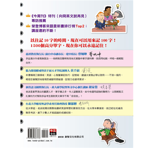 八國聯軍哪八國?承認吧!你現在想到的,是歷史老師敎你的那句「餓的話每日熬一鷹」。一個小口訣,就讓你將「俄、德、法、美、日、奧、義、英」一輩子牢記在心。用再正統的方式敎單字,出了教室學生背不起來,就只是浪費時間和口水。老派是業界頂尖的翻譯人才,單字量之多,令人望塵莫及,如今他運用超強的聯想力,以既輕鬆又扎實的方式幫助多益考生面對英文單字不再「皮皮挫」,這本新書保證讓你的多益成績瘋狂up、up、up!