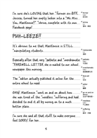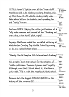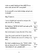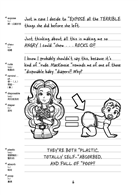 日記一開始,妮琪就「醜化」了學校前風雲人物──做作又自以為是的麥肯絲:I am so sick of everyone talking about Mackenzie.。即使麥肯絲已經轉學了,仍然陰魂不散,占據女主角的一切想法。有趣的開場與情緒性的語言,對足了讀者胃口,不得不一頁一頁翻下去。