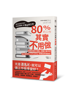 擺脫「覺得需要」但沒有實際意義的工作,「選擇」必要的工作,「集中」時間與精力把「必要的工作」做好 。不但可以提升效率、讓工作做得更好,多出來的八○%的時間,也可以分配到自己真正想做的事,真正想過的生活上。