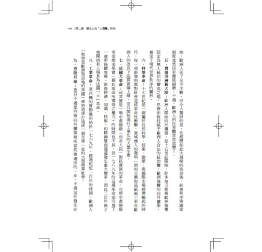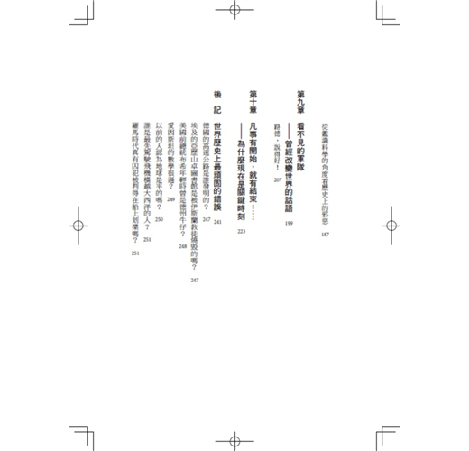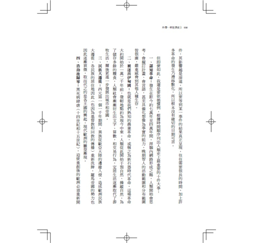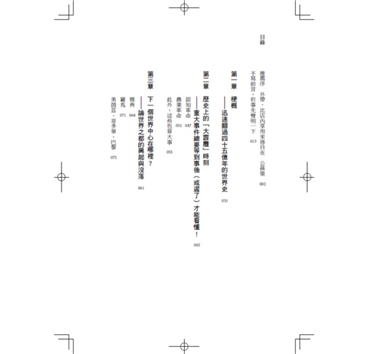 內容就由讀者自己消化了——自在的享用外帶,沒有壓力,但千萬不要只是讓文字從眼睛前面流過去而已,這不是一本故事書或純文學作品,它是有用的知識,在讀到「哪個時空背景出現怎樣的情況」時,對應一下眼前的巨變時代,能幫助你看到「啊,這個變革的影響會很大(或很小)」。