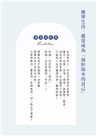 但是,在這本書中,我更希望大家能思考:在使用每一塊錢的背後,你的能量與熱情是否與你對人生所做的承諾一致?時時做這樣的檢測,相信金錢會成為你的助力,而非阻力。