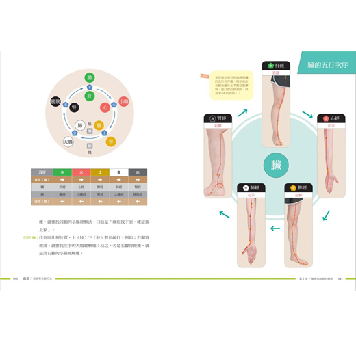 (2)辨別不適是痠還是痛,對照陰陽五行對位表,找出該經絡的上下家關係。