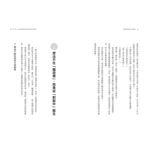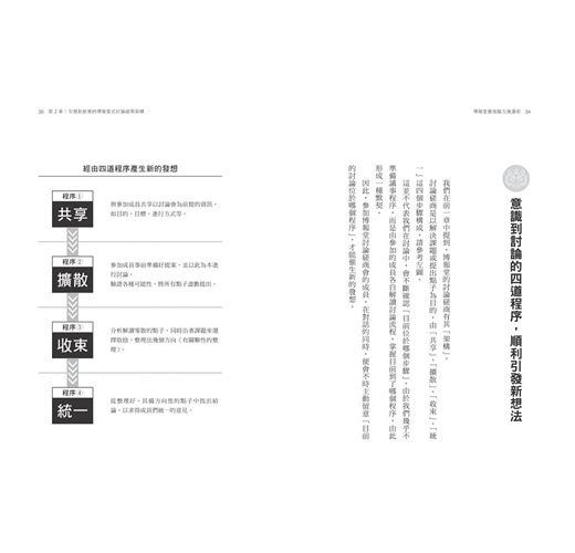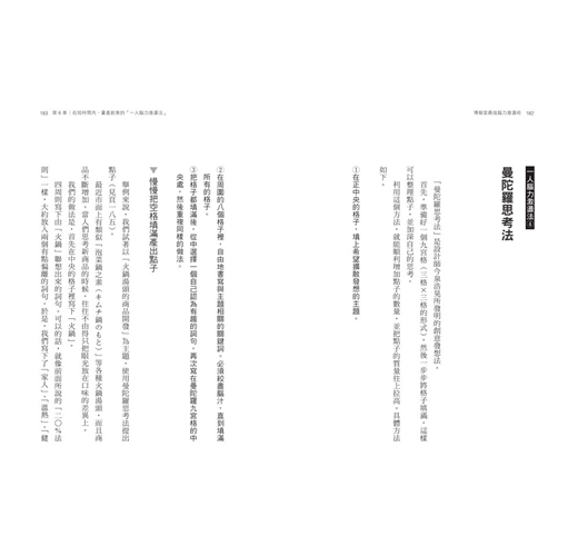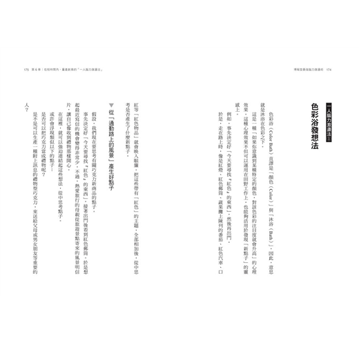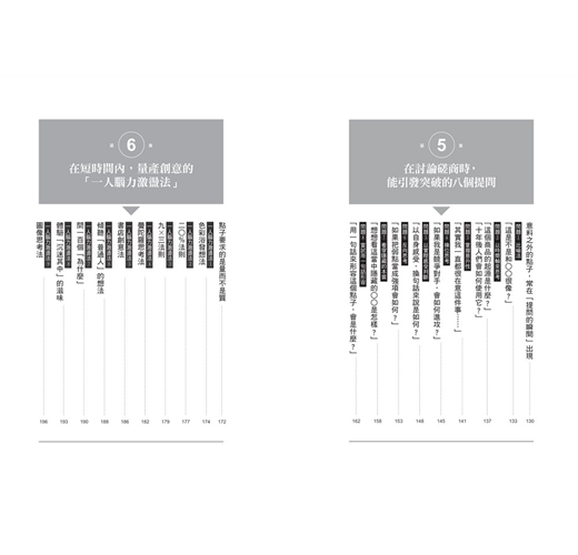 書中還有更多具體的腦力激盪法,除了分享工法,更重要的是,突破單調思維,不論各行各業,都能加以融會貫通、實際運用,成為解決問題、不斷創新的最佳利器。