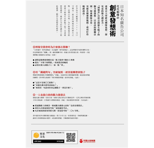 1.首次有系統地公開博報堂的創意來源,與讀者分享發掘新點子的獨門祕訣。