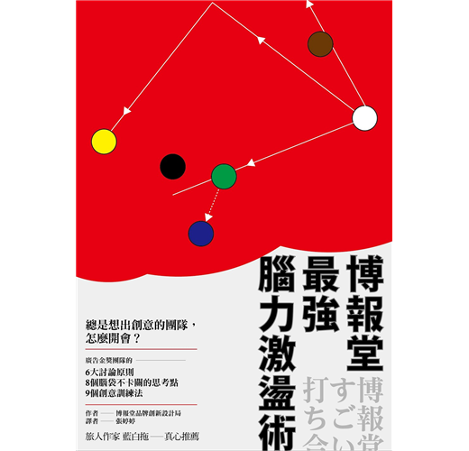 祕密就在博報堂全體員工之間,共享和相傳的「博報堂最強腦力激盪術」。本書就是由博報堂內部專案小組整理、加以體系化,初次公開所有創意生成的方法。全書提供清楚的磋商步驟,帶讀者一窺博報堂如何藉由「對」的討論方式,讓員工彼此激盪撞擊,用團隊力量激發最大的創意力。