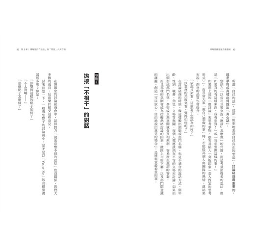 ‧讓點子不斷往上堆疊:對話就像傳接球一樣,掌握「說話」與「問話」方向,就能順利拋接話語,提高討論的品質。