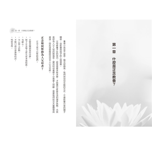 在家庭生活中,不管小孩幾歲,都可運用正念做為教養的指導原則。本書主要是從教養子女的最初幾年汲取實例,因為父母在這個階段通常需要尋找新方法來應對挑戰。