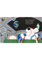 這是一本可以學習各種月球知識的繪本,例如:夜晚降到零下170 度低溫,白天達110度高溫;月球的一天很長,晝夜加起來有地球的十四天(324小時);聽不見聲音;沒有空氣;月球引力影響著地球的潮汐變化;月食,是月球進入了地球的陰影裡,因此看不見;日食,是太陽被月球擋住了;從地面算起,一百公里以上就是宇宙;超過一千公里就沒有空氣了;從地球前往月球的話,走路要十一年,騎腳踏車要三年,騎機車要六個月,搭日本新幹線要行駛五十二天,坐飛機要飛十六天;從地球看見的月球,永遠都是同一面;從地球看不見月球的背面。月球上,不會吹風,也不會下雨,所以腳印會永遠留存。——日本.Nori