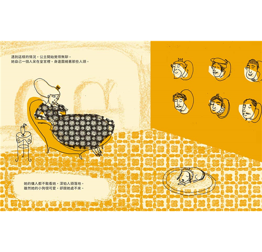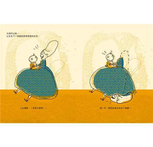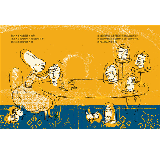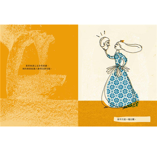 翻開書頁第一句話就是,「葛莉絲達公主非常美麗,她的美麗能讓人變得沒頭沒腦」,第二句是「那不只是個比喻」。「沒頭沒腦」是個事實,是故事的主軸,凡是讚嘆公主美貌的人們,個個人頭落地,拜倒(滾到)在葛莉絲達的石榴裙下。