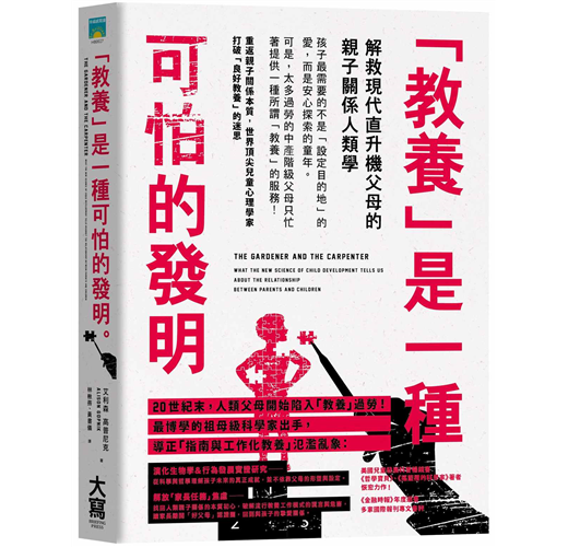 事實上,教養是一種可怕的發明。它並未改善孩子與家長的生活,而且某種程度而言,反而讓親子關係變得更糟。對當前中產階級父母而言,試著讓孩子成為「優秀的大人」,成為父母無盡的焦慮、內疚及沮喪的來源。而且對他們的孩子來說,父母在教養上所加諸的期望,也會帶給他們沉重的壓力。