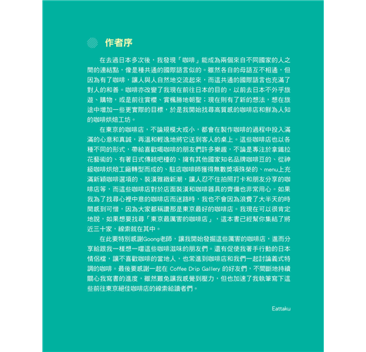 本書作者Eattaku熱愛咖啡、美食及旅遊,