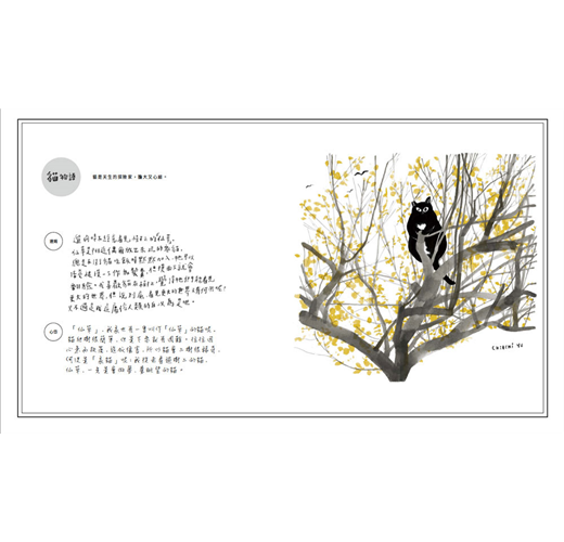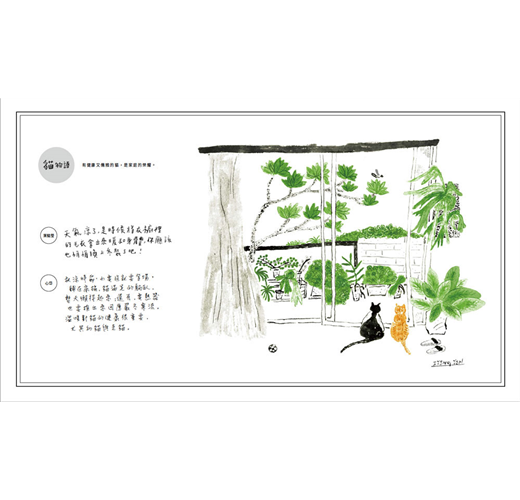 本書穿插三位插畫家薛慧瑩、葉懿瑩、達姆的插畫,以及與心岱關於貓的「對話」。