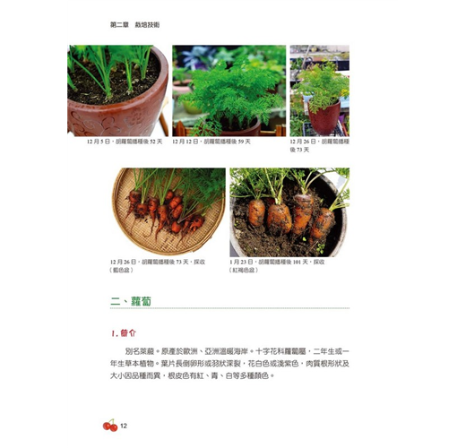 本書是一本通俗易懂、直觀簡易的陽台種菜科普圖書,作者是蔬菜學博士、華南農業大學副教授,在工作之餘,多年來在家中的陽台、天台種植蔬菜,有豐富的家庭種菜經驗。書中收錄的幾十種蔬菜,是作者及家人在陽台、天台種植的蔬菜種類和品種,透過圖片拍攝形式,記錄了幾十種蔬菜實際栽培管理過程,展示了陽台、天台家庭盆栽種菜的方法,並用通俗簡單的語言介紹每種蔬菜對環境條件的要求、播種方法、水肥管理、採收時期、營養價值及食用方法。書中圖片均為作者實際種植拍攝,希望可為都市家庭種菜愛好者提供一些有益的幫助和指導。