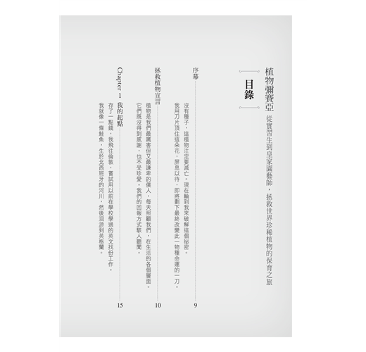 一本頌揚生物多樣性的書,引人入勝……一位迷戀植物的人所寫的自傳,包含了童年在西班牙的溫暖家族故事,以及身為現代植物獵人在世界各地的驚奇探險。──《圖書館》雜誌(Library Journal)
