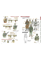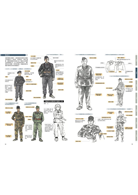 ◎各類軍服裝備彙整:陸、海、空、冬季禦寒裝備全彩呈現,槍砲、階級章等道具繪製。