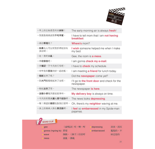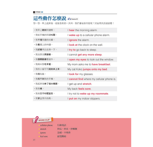 本書特別針對每一句中最重要的文法或片語進行講解,不但能了解為什麼要這樣說之外,還能學習到除了這個用法還能替換成什麼?還有什麼延伸用語?讓你不是只學到一句英文,而是一次學會好幾種說法!例如搭地鐵、火車、公車的時候用 get on,下車時用 get off,但是搭汽車和計程車時上車要用 get in,下車則用 get out of,一次學會所有交通工具的用法,學習無死角!
