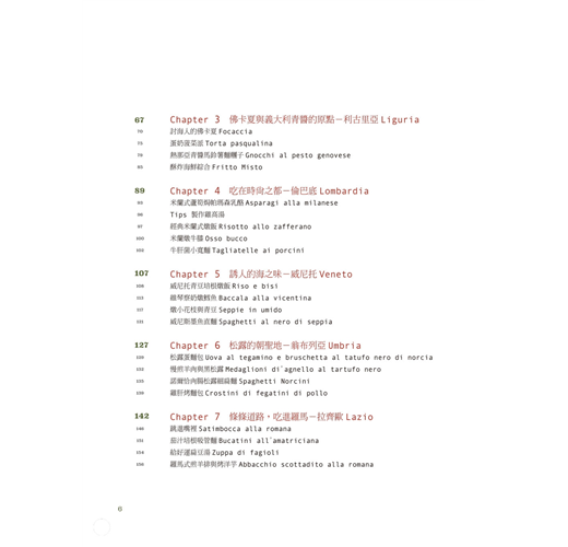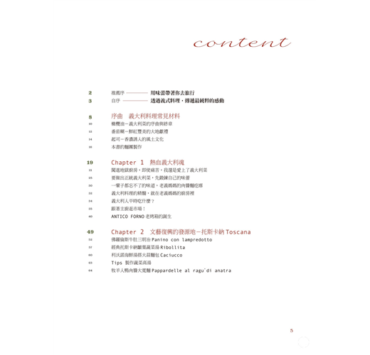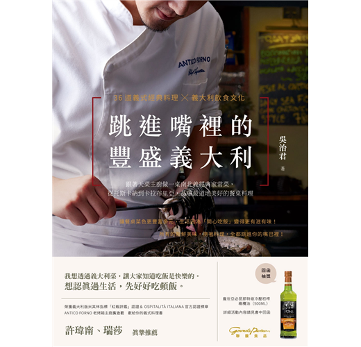 精選36道義大利從北到南的特色菜餚,除了義式料理的基礎技法,還有怎麼吃最對味的延伸搭配,讓你激發出不同的味蕾火花,享受「不拘謹、輕鬆吃」的正統義式精隨。