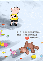 這一天,花生米玩完玩具不想收。媽媽說:「我要在你的紙上蓋壞寶寶印章。」