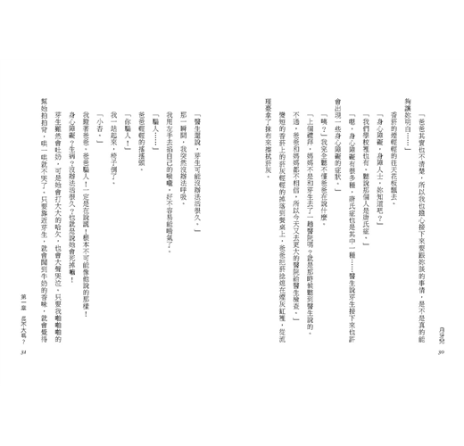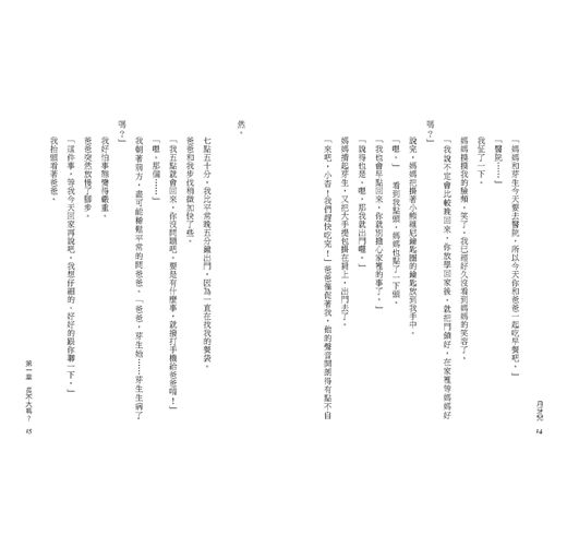 「你要出門嗎?」我驚訝的問。爸爸這時走了進來,一邊打著領帶。