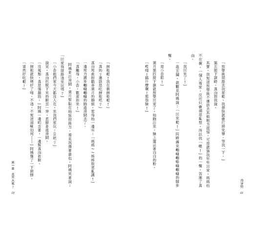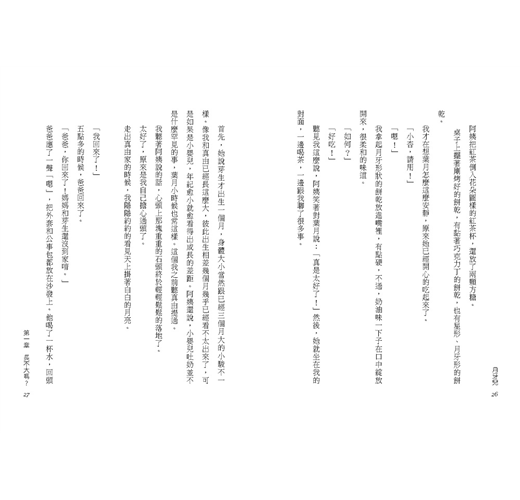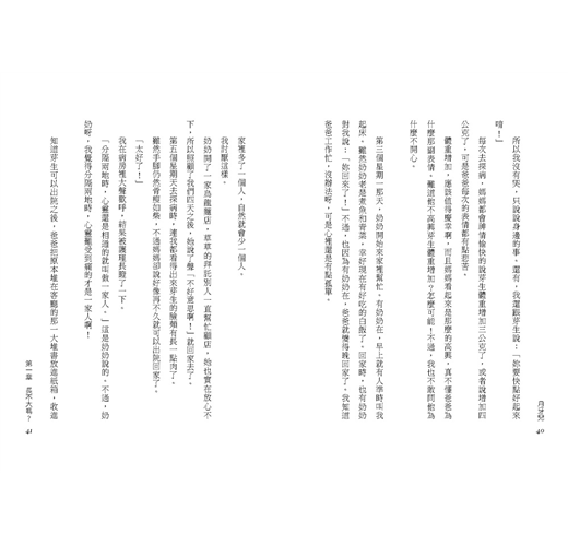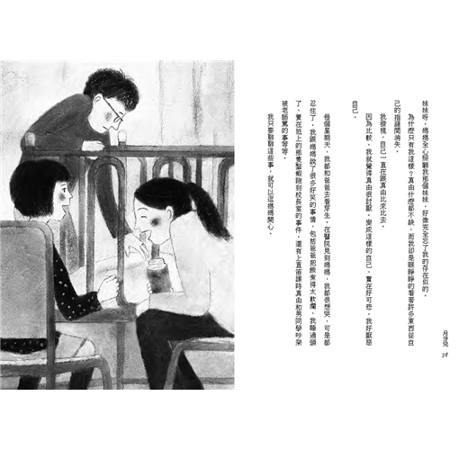 小杏一輩子都無法從「家有障礙兒」的人生課題逃開。障礙兒妹妹讓小杏覺得丟臉,但妹妹可愛的一顰一笑又著實牽動著她的心,作者用月相的變化比喻了這些反覆出現的情感拉扯。在生命之輪轉動的過程間,小杏體悟了人生的圓融如天上的一輪明月,陰晴圓缺都是美好。如果這種體悟與轉念不叫成長,什麼是成長呢?