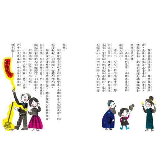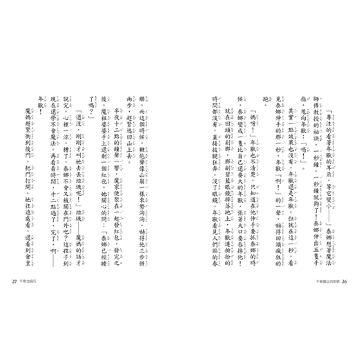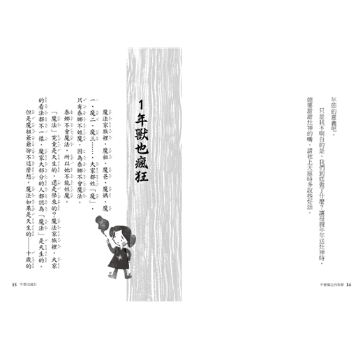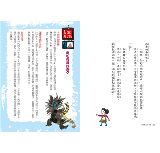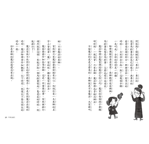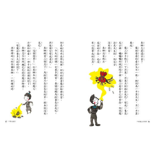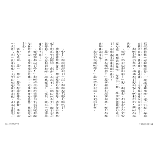 或許是時代的氛圍,迫使澎維這樣嘗試。澎維是老師的身份,在教育和文學的比例之中,想必會有掙扎與妥協,如今《不會魔法的泰娜》是新的嘗試,大膽有趣,比起之前的作品,幻想的成分更加大膽,她竟然把西方的魔法元素,加入中國傳統的節慶,以後現代流行的「混搭」技巧,創作這次的故事,力求突破。