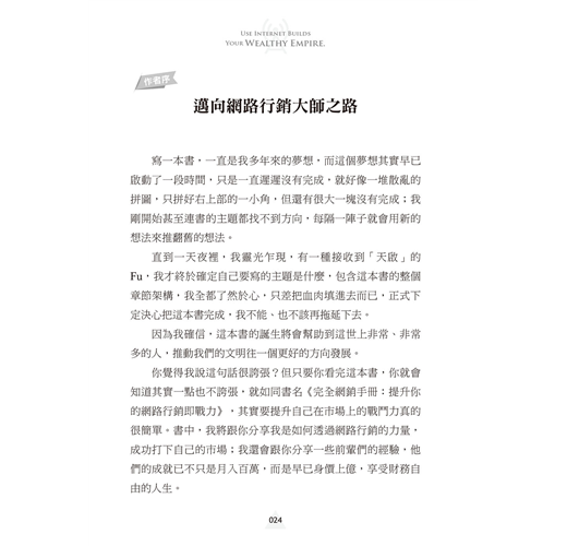 書中完整解釋各句太極心法的意涵,將古老的智慧與網銷觀念結合,