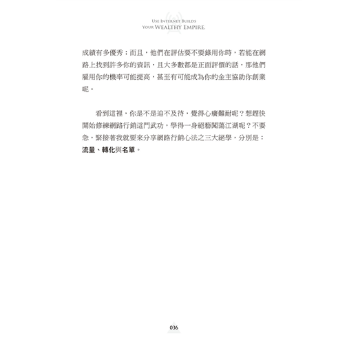 在網路這塊兵家之地,若要得勝,就要提升你的網路行銷即戰力!一本搞懂網銷三大關鍵:流量、名單、轉化