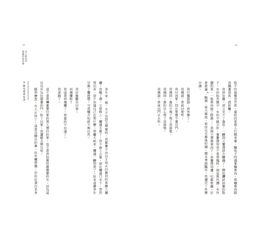 十九歲時,我自恃才華橫豎坐躺都溢,總一副故作清高的德行,如今回想起來自己仍會害臊。就在失戀跳樓的戲碼以前,我已經有過長達三個月不跟任何人說一句話的前科,家人以為我患憂鬱症,母親為求我開口說話,日夜以淚洗面。可我竟是那般不懂事,只為彰顯自己跟這個世界的與眾不同,眼睜睜看她為我心碎。