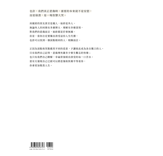 悲傷和快樂一樣,本是生命中對等的情緒,