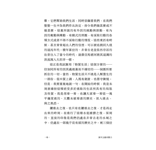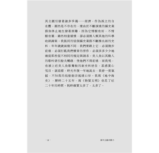 這本《資本主義的動力》是一九七六年布羅代爾在美國霍普金斯大學所作的三次學術報告的講稿。講稿以Afterthoughts on Material Civilization and Capitalism為題譯成英文,此後又譯為意大利文。本中文版根據作者法文版翻譯,對於原稿未作任何更動。作者特別提醒讀者注意的是,本講稿問世在一九七九年出版的《15至18世紀的物質文明、經濟和資本主義》之前。
