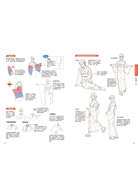 ◎在角色身上加入輔助線,詳細解說角色穿著服裝行動時,皺褶與布料會產生何種變化。