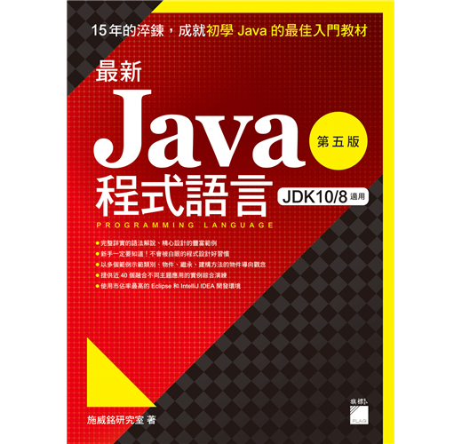本書從第一版規劃寫作至今已 15 個年頭, 期間配合 Java 版本的演進歷經多次改版, 每次改版都彙集眾多讀者和教學單位的意見, 讓書中內容更簡明易懂、更符合初學者的需求。我們的期許不僅是希望幫助讀者撰寫出可編譯、可執行的 Java 程式, 更重要的是從入門就培養良好的程式設計方法, 以及軟體設計的邏輯思維, 未來才能成為稱職的程式設計師。