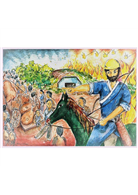 另有一件事值得一提;抗清戰事尚未平息,乾隆對台灣前線戰場有了好奇和想像,尤其是福康安奏摺上所描述的那些林深菁密、高山急流之處,或者是清兵須爬藤冒死進攻的那些戰場。為此,1788年(乾隆五十三年)二月十九日,皇帝下令派遣台灣畫匠到各個主要戰場繪出戰爭畫面送回北京,再由宮廷畫師繪製彩稿並雕製成法國流傳而來的銅版畫,共有12幅。其中一幅,便是林爽文於竹南老崎衢被捕的第一現場。