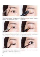 STEP 03蘸取有一定光澤感的咖啡色眼影,從上眼瞼下方開始以平塗方式由下而上塗抹眼窩。塗抹時注意範圍不可超出提亮色,暈染要自然。