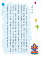 共有六則適合低、中年級小學生閱讀的故事,每則故事都會以創新故事來解讀常見的成語,各故事結束後,有「成語摩天輪」、「小作家上場」、「拼字變成語」三大單元,並設計可愛的稿紙,方便小朋友學習續寫故事、玩拼字學習常用成語!