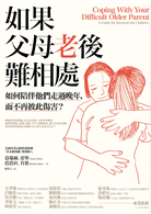 作為一個負責任的成年子女,必須了解問題並不在單一方面。你若只聚焦在父母的問題行為上,而忽略了彼此的互動關係,便很難走出困境。本書的功用之一,是讓你看到這令人痛苦的親子關係,可以透過應對心態及溝通模式的調整而獲得改善。也希望藉由此書,讓為人子女者,能更加理解父母難相處背後的掙扎與痛苦。