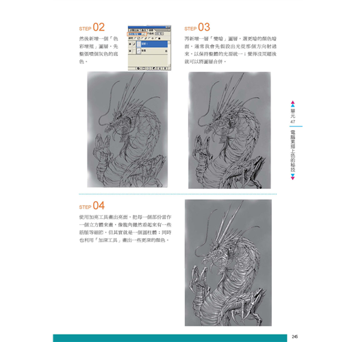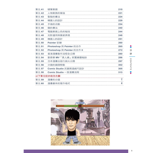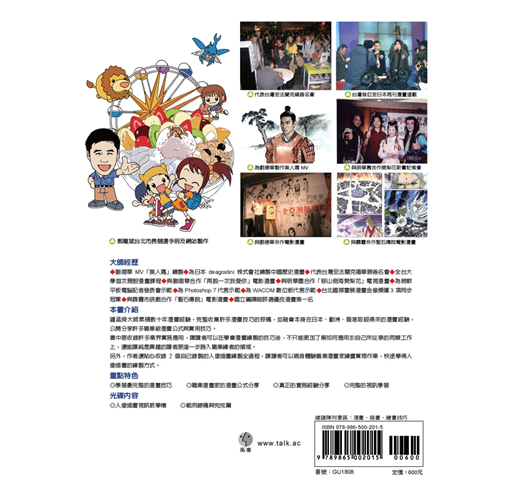 因我之前在日本連載,也與香港劉德華的公司合作,這本書也收錄香港漫因我之前在日本連載,也與香港劉德華的公司合作,這本書也收錄香港漫畫公司的實際流程。這幾年也到德國、韓國、大陸參觀漫畫展,實感到台灣已在遠遠落後中、甚至是越差越遠,其實我是非常擔心的。希望藉由此書盡一己之力,所以本書所特別強調的特色是職業運用,基本上每一單元之後都會附上一個我在職業上是如何使用這個技巧,證明這個技巧確有實用、能賺錢的、不是畫好玩的,因此本書要告訴讀者的是學了能就業的技巧、在商場上有競爭力的技巧、進而能在國際上有競爭力的技巧。並且附上我與日本、香港合作的一些實際照片與製作流程,就是希望大家能直接進入一個就業的狀態與環境中,讓想學習商業繪圖的同好不再對此環境陌生,也希望藉此與很多的職業繪者交流分享。