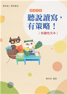 《聽說讀寫,有策略!》這套叢書的設計,正是以引導學生更有能力去發現問題、並探究學習的方法與策略為目的,針對不同年段的學習領域,分為低年級、中年級、高年級與國中四冊。每一冊均強調「讀本」與「學習筆記」同步運用,再透過「親近它」、「理解它」、「運用它 」三段學習步驟,循序引領教師、家長了解「方法取向」的語文課。