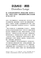 本書精選20到21世紀最具影響力的紀實攝影師,簡要深入地介紹他們的傳奇人生、歷史評價和攝影遺澤。書中以全頁或跨頁的大畫幅,呈現他們的畢生代表作;這些作品都以最富洞察力和表現性的方式,捕捉了一個事件、乃至於一個時代的精髓,也因此每一幅都是攝影史上流傳最廣的經典影像。