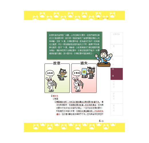 距今十多年前,與一位留日的恩師在閒話法律的學習與教育時,恩師感嘆:「在日本留學時,看到很多教科書和考試用的參考書都有豐富的圖表、甚至有逗趣的漫畫實例說明。有一些法律概念,讀過幾本大書後,居然是看了一則漫畫、幾個可愛小人後,才真正的懂。我們的學習圖書如 果有這種入門的教材,喜歡學法律的人應該會更多。」
